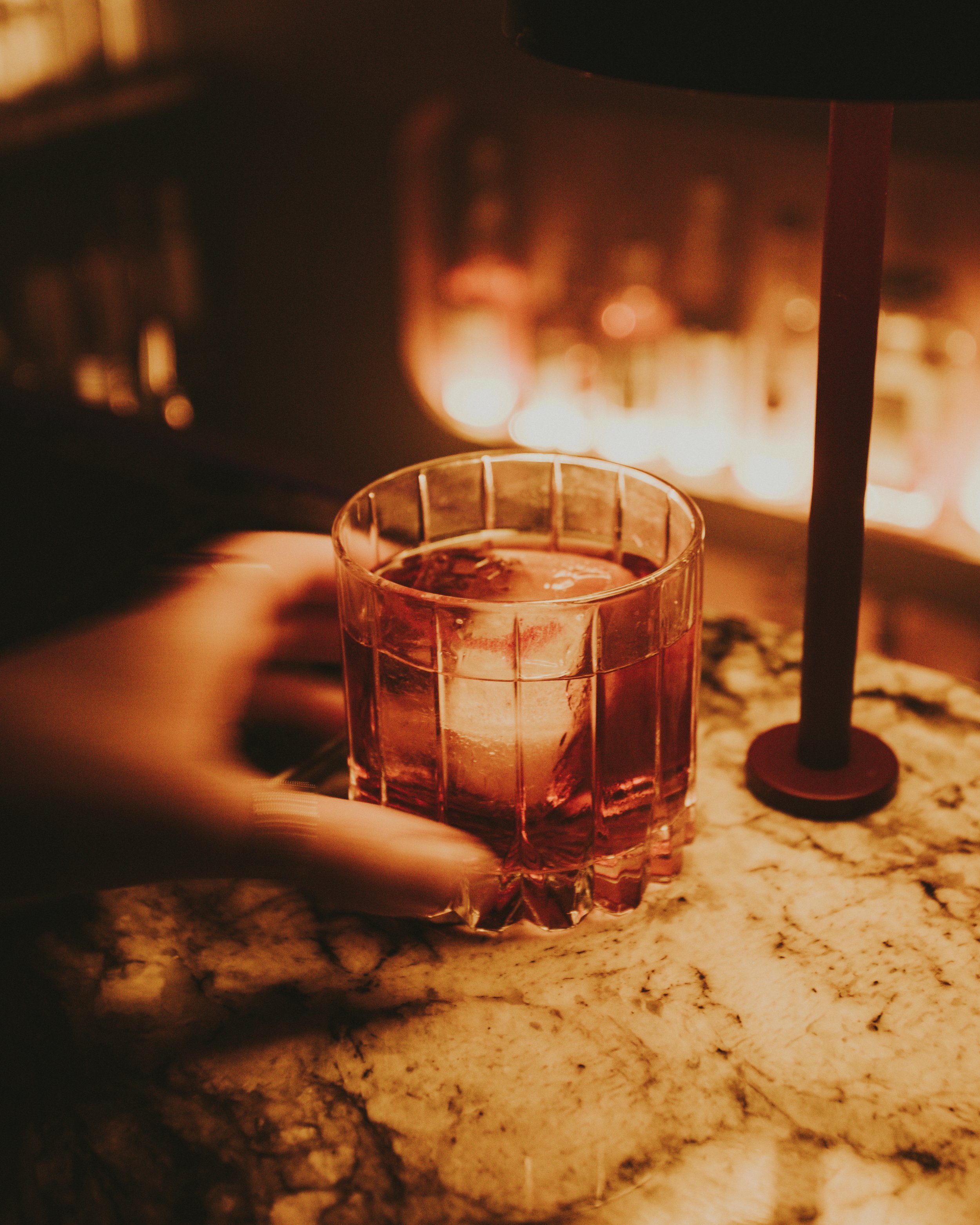 Mezcal Sueno de Alden, Chartreuse verte, Apérol, jus de citron